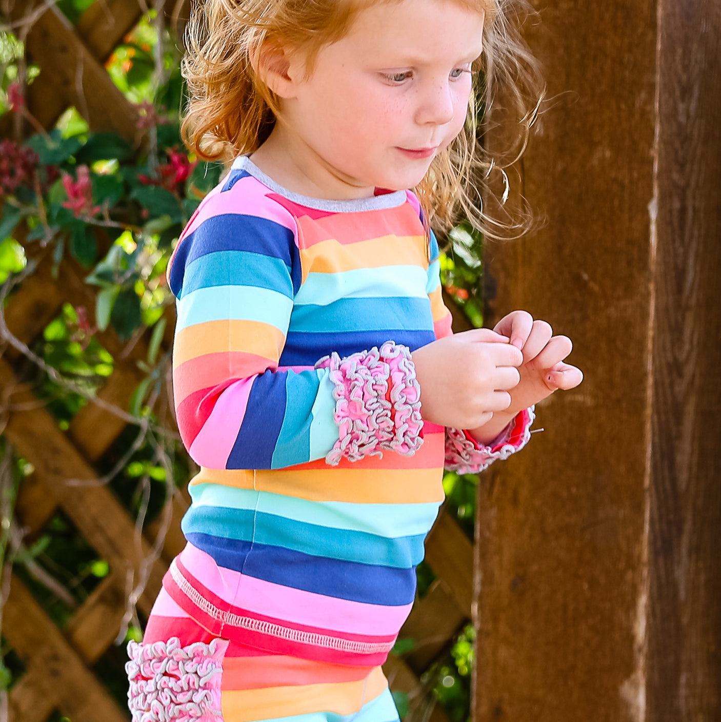 AnnLoren Baby Big Girls Boutique Long Sleeve Rainbow Ruffle Layering