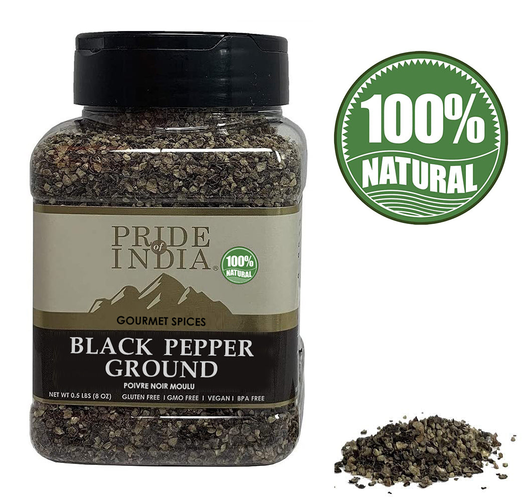 Pride Of India brings naturally grown food and herbal products from India that enhance the overall health of the human body through the centuries long tradition of consuming pure foods from farm to table. We are a family owned company and source all our ingredients from direct farms in order to preserve the quality as well as freshness of all our products. We value sustainable farming and aim to build a company that benefits the entire food chain from the grass root level upwards. We are committed to sourcing the freshest naturally grown spices from farms situated around the Indian subcontinent. Our naturally cultivated pure spices render a wonderful cooking experience and ignite taste buds while improving overall health as well as balance of the body. Black Pepper is indigenous to India and belongs to the Piperaceae family. It gets the pungency from Piperine present in it. Black Pepper is world's most traded and loved spice as it is found in every kitchen and is used to garnish savoury dishes. Best used for salad dressings, rubbed on meats and other sea food before roasting or cooking. A perfect add-on for soups, sauces , stews and mashed potatoes etc. It is used for bakery purposes too. Black pepper carries health benefits such as improving digestion, immunity boost etc. Pride of India Gourmet Black Pepper is a must have spice on dining table in homes and restaurants. A small handy jar for wherever you go. Our customers are the most important link in fulfilling our aim and therefore, we strive to provide an unparalleled service in order to satisfy all our consumers to the best of our abilities. We hope that every customer has a great experience with us and enjoys our exclusive products to the utmost.