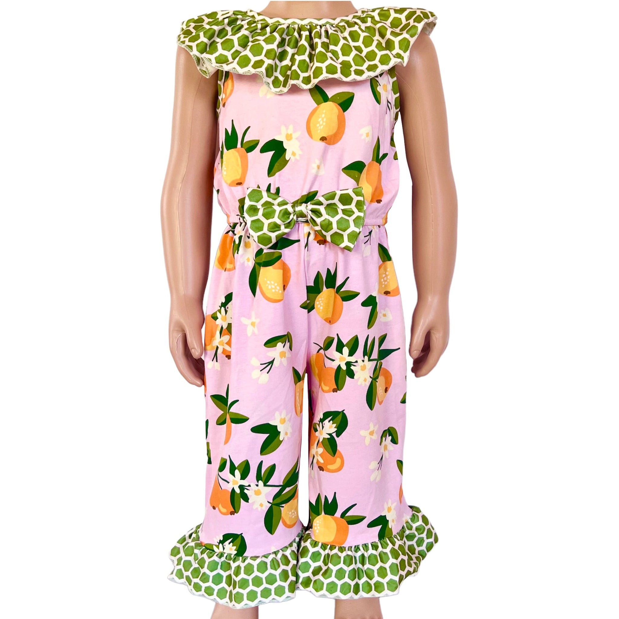 AnnLoren Girls Pretty as a Peach Capri Jumpsuit One Piece Outfit