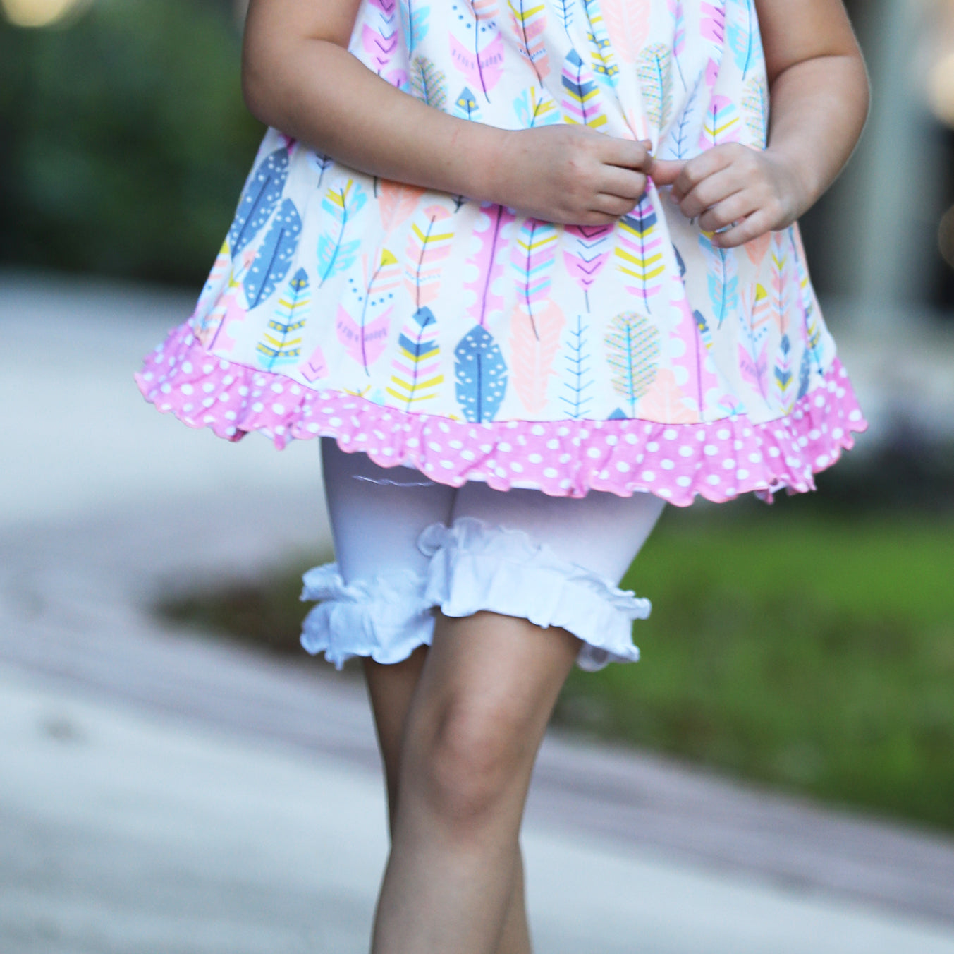 AnnLoren Shorts with Ruffles. High Quality fitted stretch shorts with Ruffles on the Butt and trim. Elastic waistband for a comfortable fit. 95% EGYPTIAN Cotton/5% Spandex and Machine Washable.