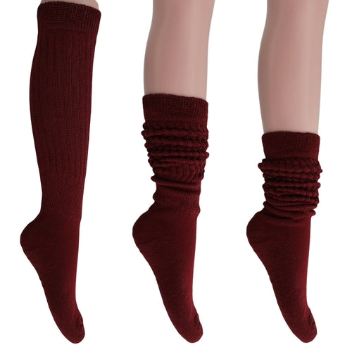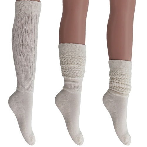 Cotton Women's Extra Long Heavy Slouch Socks, 6 Pairs Shoe Size 5-10