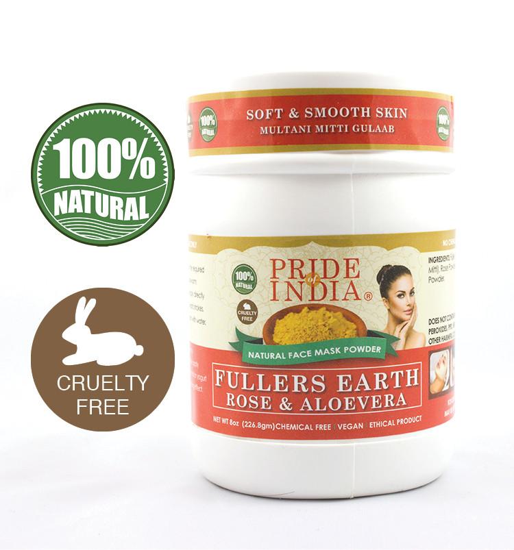 Pride Of India Fuller's Earth Deep Cleansing Clay Powder w/ Rose & Aloevera is a perfect recipe for fighting acne, pimples, and pigmentation. It neutralizes the oils in the skin, and gives it a smooth and a soft texture.Fuller's Earth is a natural clay like material that has the capability to absorb oils and liquids without any need for chemical treatment. It has been used for facial and skin cleansing purposes for centuries.